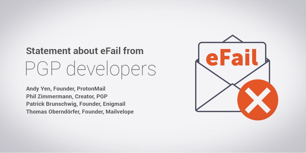 We are the developers of Enigmail(new window), Mailvelope(new window), Proton Mail, and the inventor of PGP(new window). Together, we have built a lot of the software that powers email encryption today. Last week, a group of security researchers released a paper(new window) that was then promoted by the Electronic Frontier Foundation(new window) (EFF) and received significant media coverage. The EFF and many news outlets proclaimed there are “serious vulnerabilities in PGP” and recommended that users disable PGP email encryption.