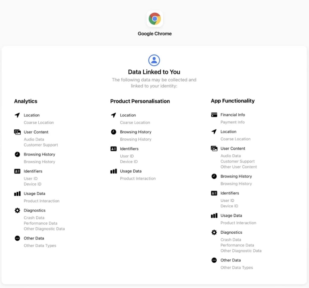 However, none of that would matter if you use Google Chrome, which exposes your browsing history, device ID, and other personal information to Google and its affiliated third parties.