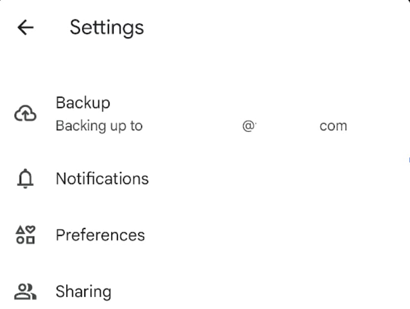 - The top entry in the settings screen says backing up to and then your email address. Tap there.