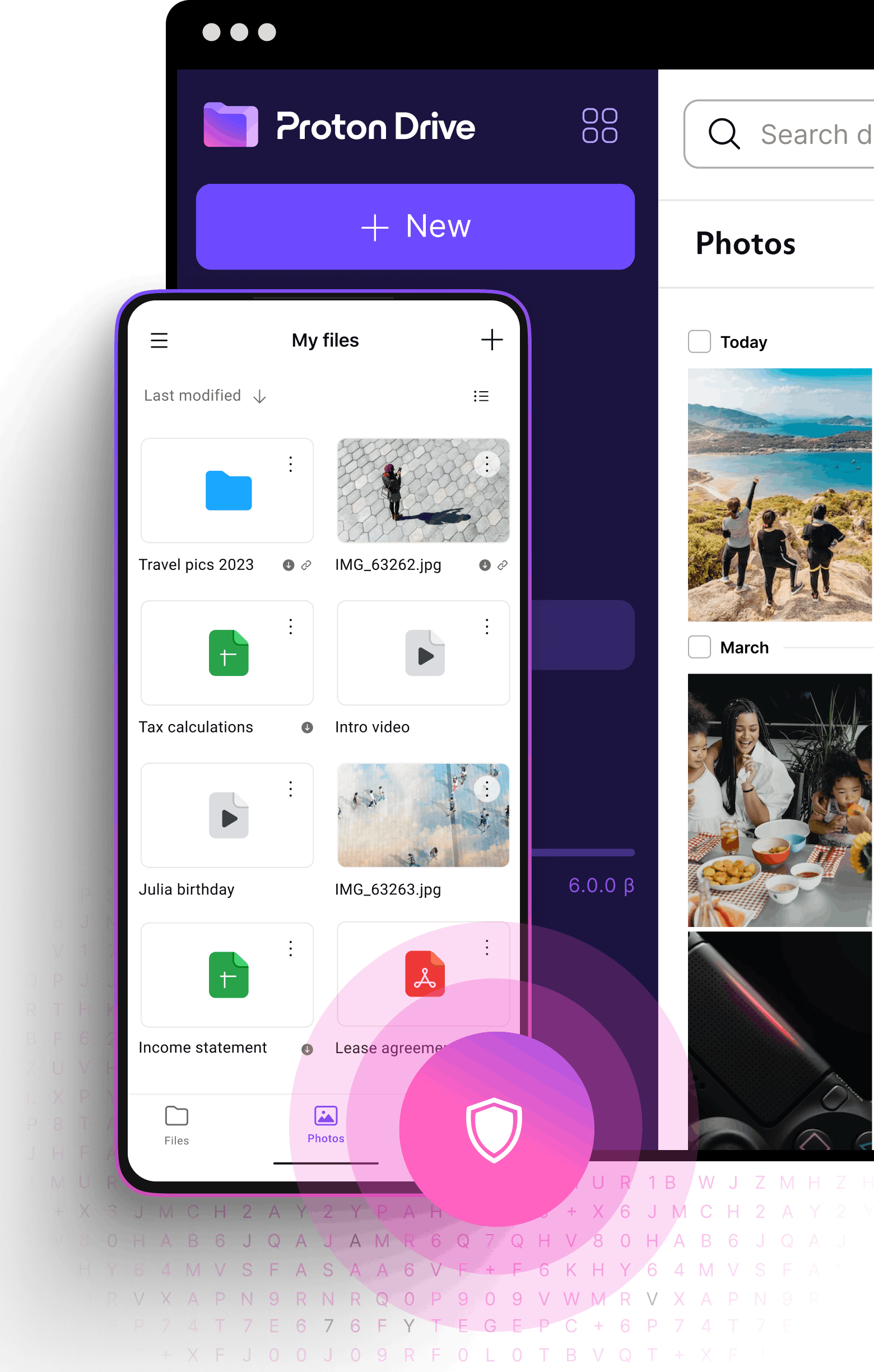 All files in Proton Drive are end-to-end encrypted, but our unique encrypted search technology makes searching for encrypted files possible.
