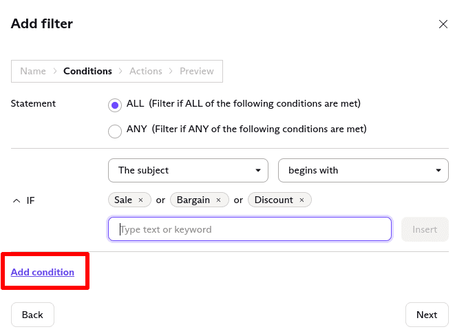 7. Select Add condition to build a complex filter. You can attach as many conditions as you’d like to a filter.
