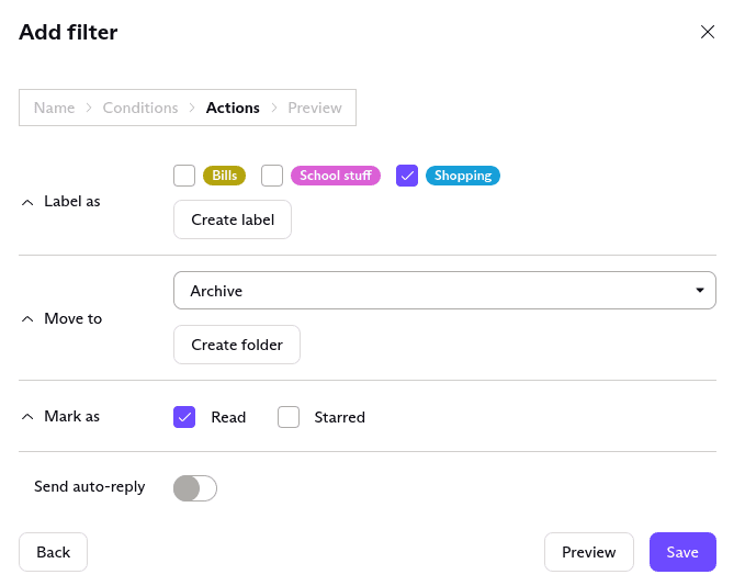 Note: Only users with a paid Proton Mail plan can send an auto-reply.