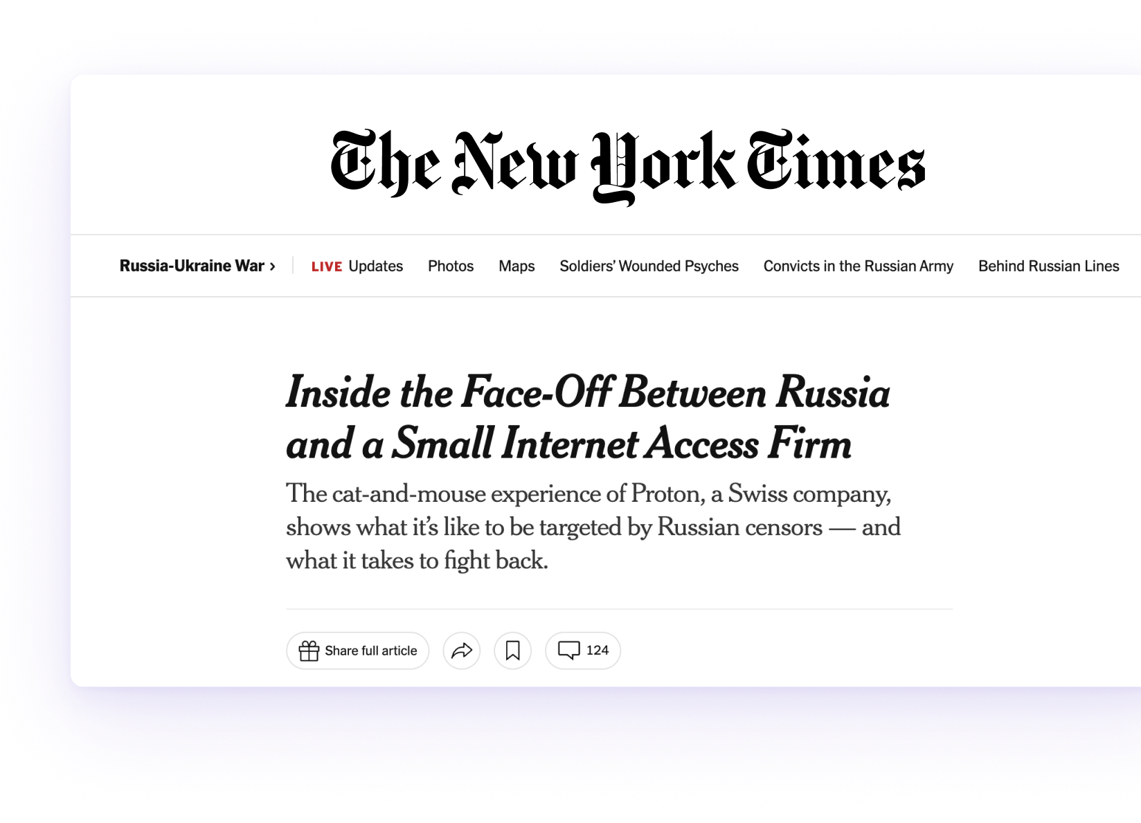 In 2022, our work was featured on a front page New York Times article, highlighting the challenges and efforts we go through to counteract government censorship, especially in countries like Russia, and ensure our users are still able to access and share information online.