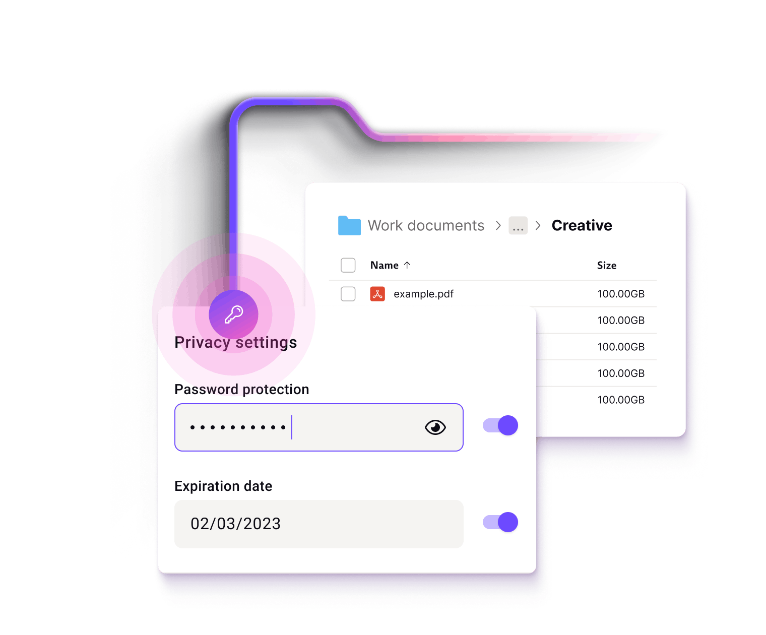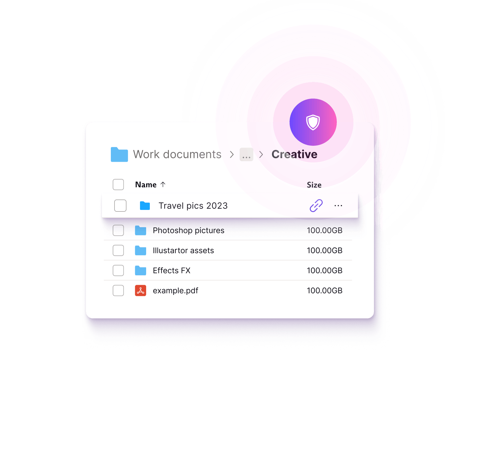 You can instantly share files of any size by creating a shareable link in Proton Drive. Proton Drive protects all your file-sharing links with end-to-end encryption.