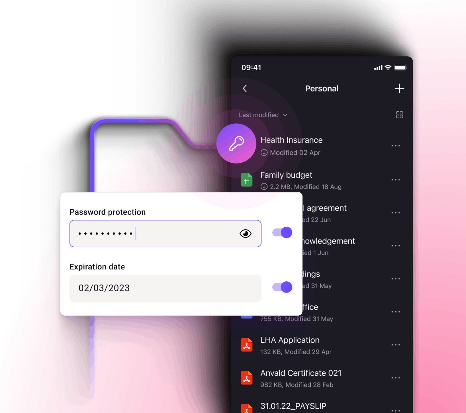 You can create a file-sharing link using the Proton Drive apps for web, iPhone, or Android. Upload files of any size directly from your phone and create secure, shareable links to send to your contacts. Proton Drive’s intuitive interface makes it easy to share files with anyone, across all devices.