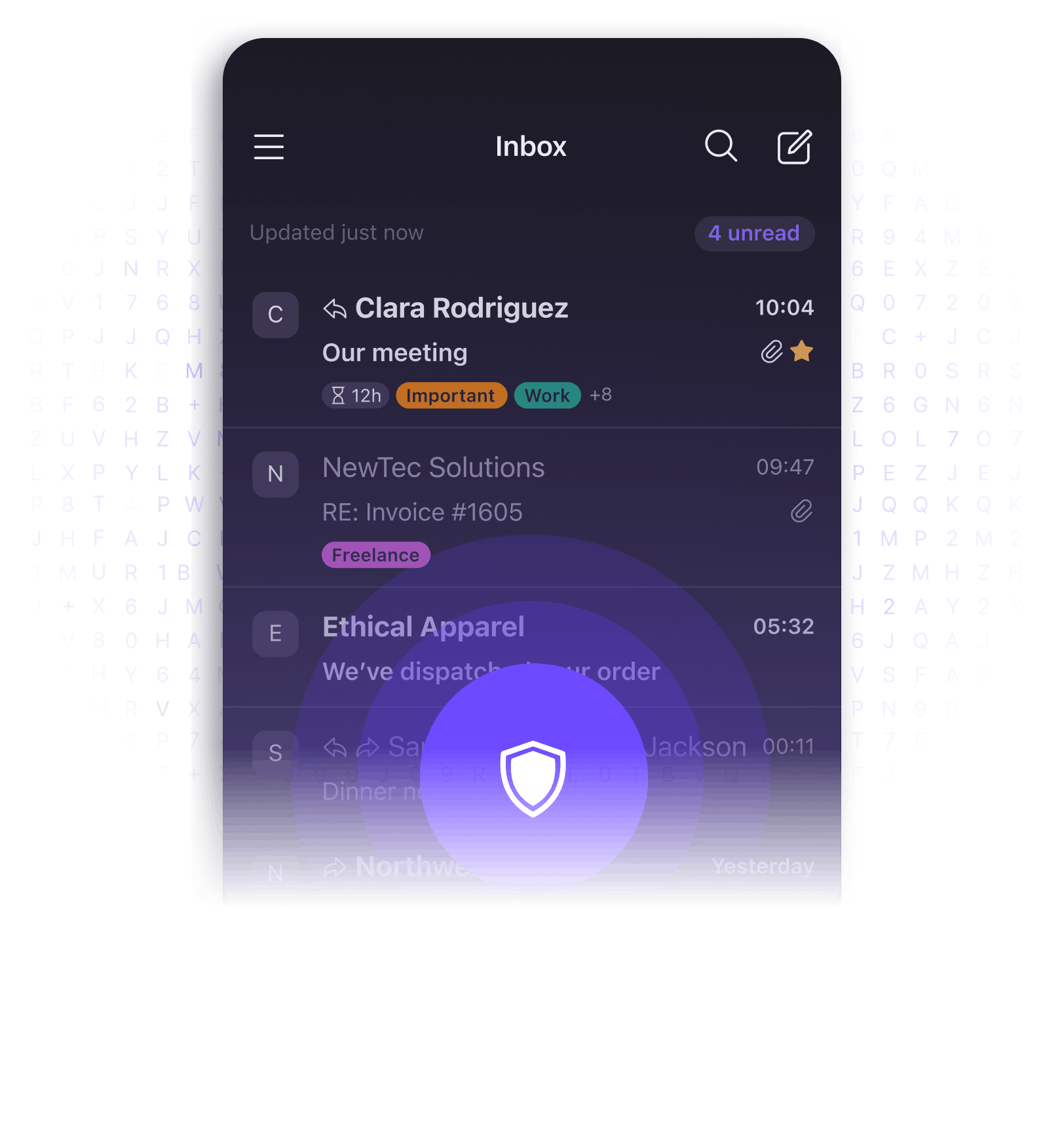 Search the full contents of your emails to find the one you’re looking for. It all happens on your device, and your data is always encrypted.