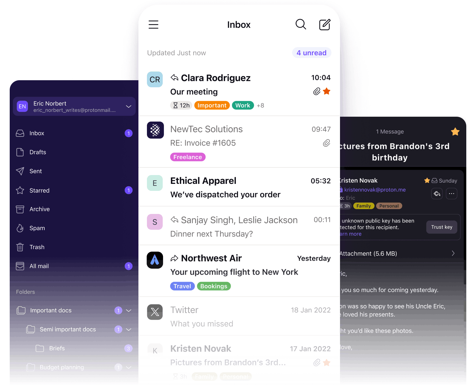 The ease and security of Proton Mail, on all your devices.
