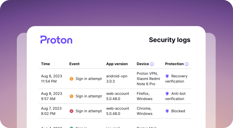 We're also always developing new features to help you stay one step ahead of attackers. Proton Sentinel(new window) combines machine learning with the Proton cybersecurity team’s insight to prevent account takeovers, even if the attacker has your password.