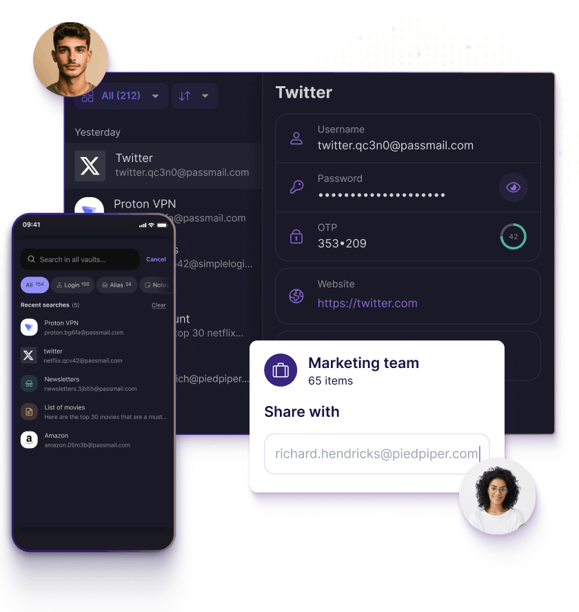 Proton Pass makes it easy for your team to securely share logins and control who has access to sensitive logins.