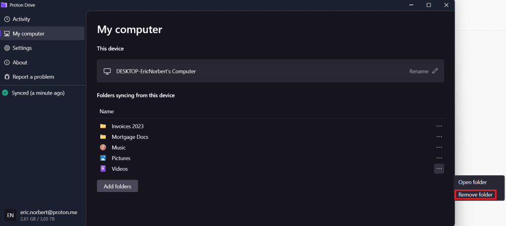 Once you have signed in to Proton Drive on the Windows app, you can choose the folders you want to sync to the cloud. This will let you access the latest versions of the files contained within these folders with the Proton Drive web app. You can sync specific folders from your Windows device to the cloud by doing the following: