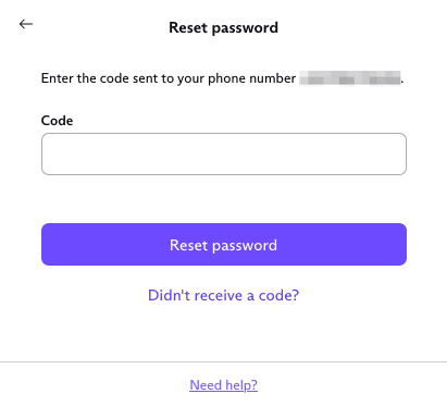 4. Enter the code that was sent to your recovery phone number and click Reset password.