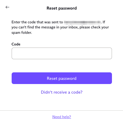4. Enter the code that was sent to your recovery email address and click Reset password.