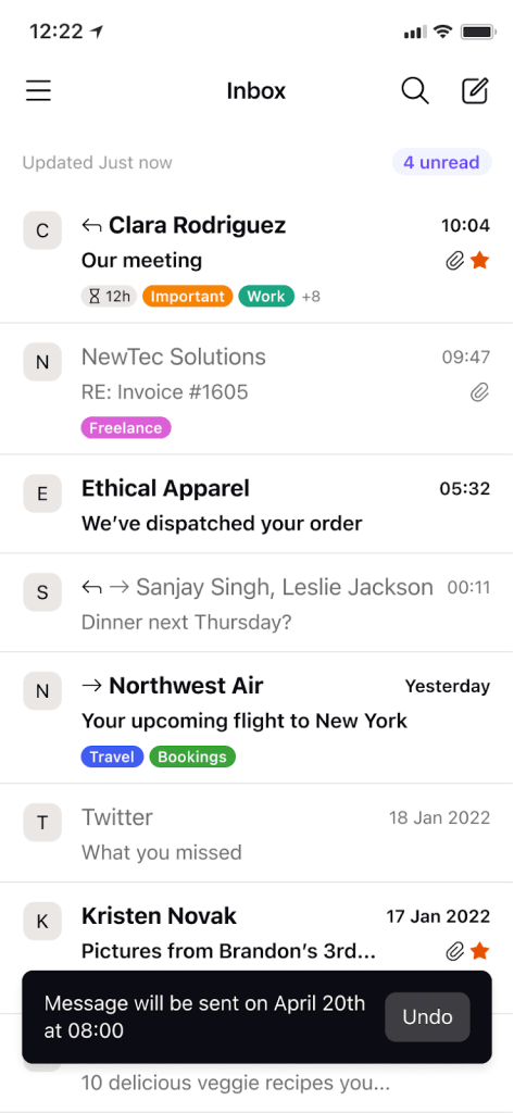 Note: To cancel a scheduled email immediately after scheduling it, you can tap Undo in the black confirmation bar that appears for a few seconds after scheduling your email.