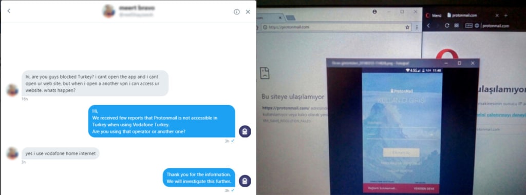We have contacted both Vodafone Group (the UK-based parent company) and Vodafone Turkey, but so far neither has commented on the incident. However, Proton Mail users are everywhere in Turkey — some even work for Vodafone Turkey or the Turkish government — and we are working to escalate this behind the scenes to get approval for Proton Mail to be unblocked. These same sources were also able to disclose that Proton Mail was swept up in a concerted action launched on March 12th, 2018 against a number of services, not just Proton Mail.