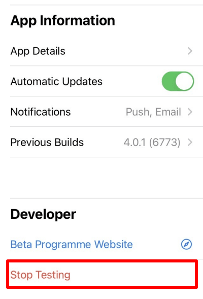 If you’d like to stop beta testing altogether, scroll down to the bottom and tap Stop Testing.